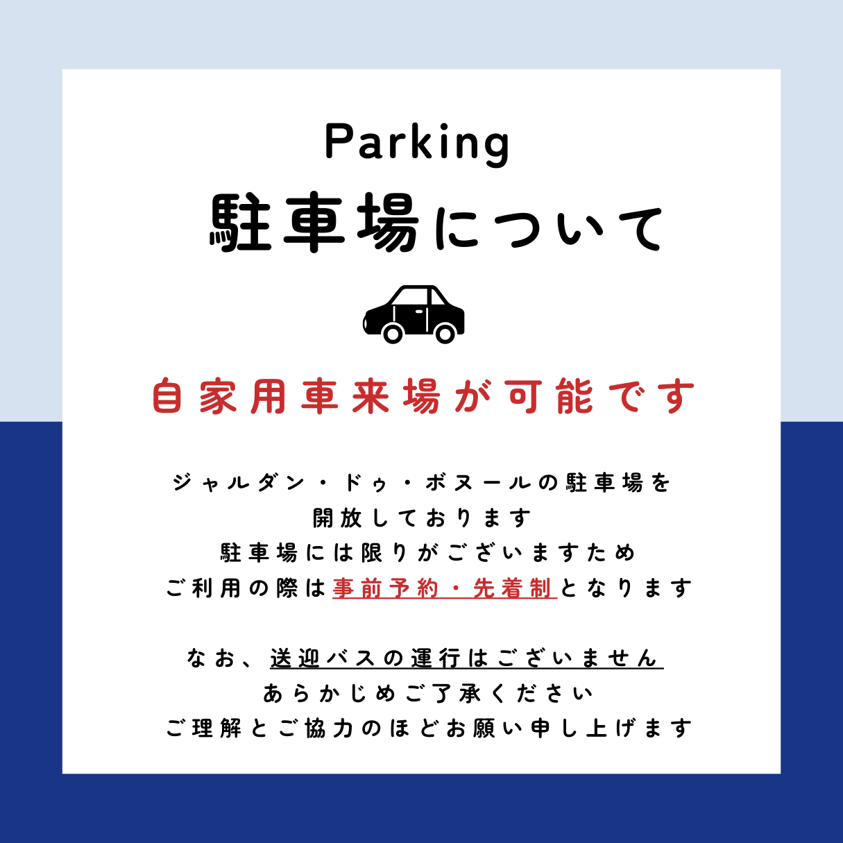 ※送迎バスの運行はございません。あらかじめご了承ください。