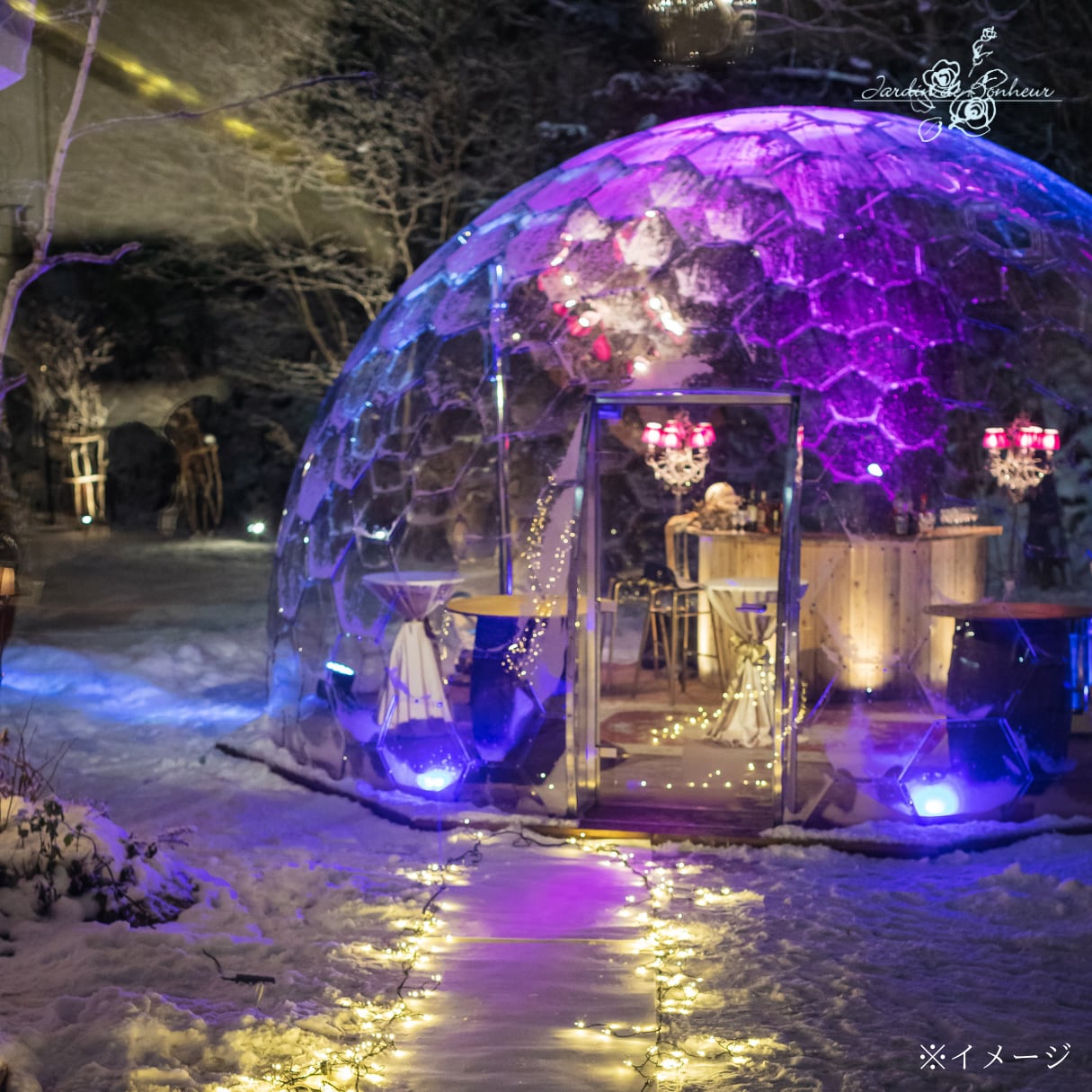 雪と光が織りなす幻想の世界「アウラドーム幻想ナイト」。今年初開催となる、ウィンターシーズン限定のナイトイベントです