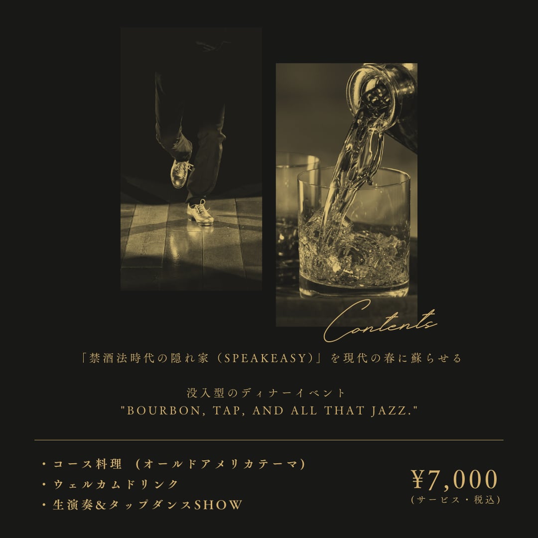 バーボンが似合う1920年代の“オールド・アメリカ”へと誘われる夜をお楽しみください。